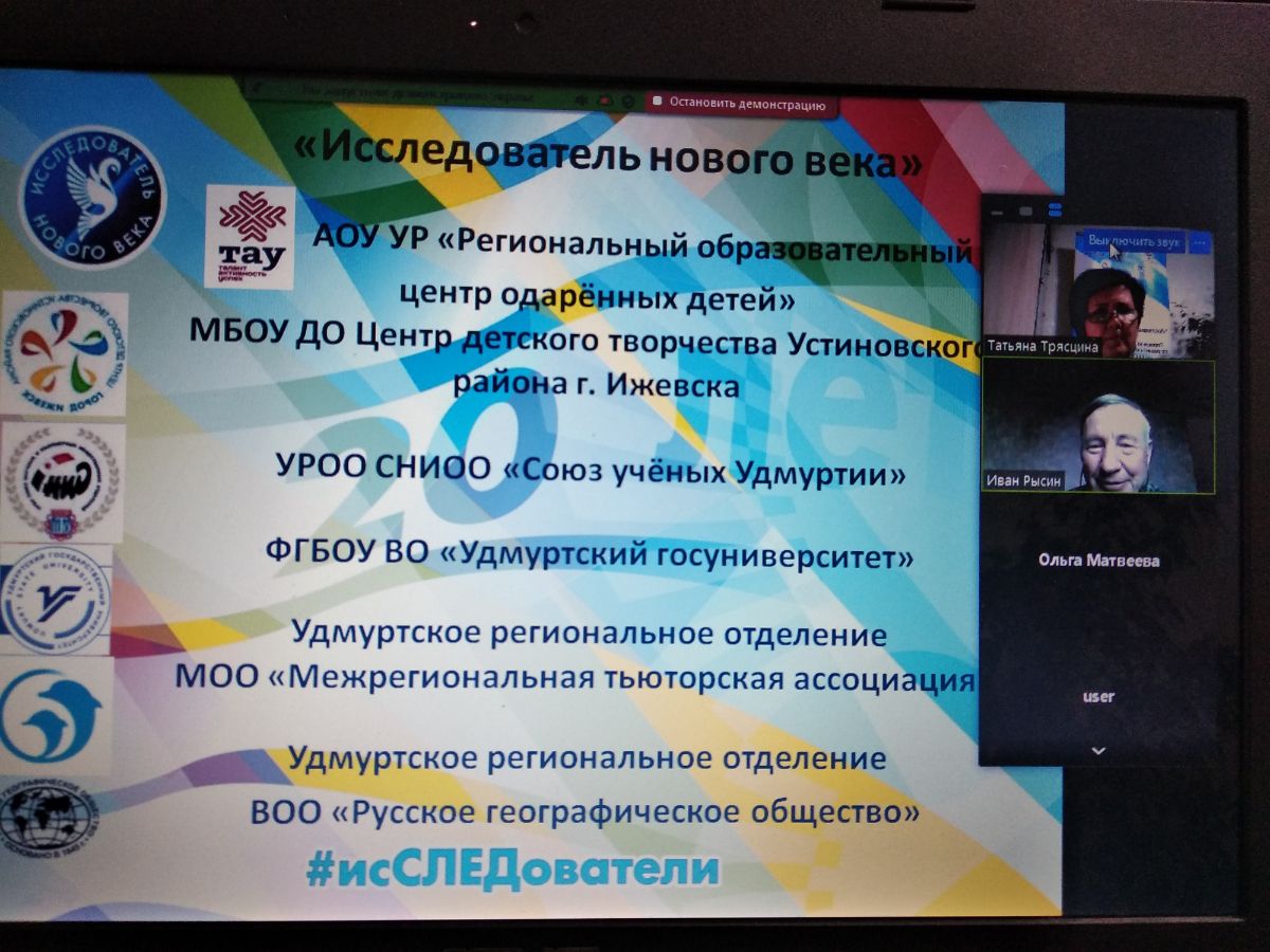 С приветствиями перед участниками на общих сборах выступали Первый вице-президент "Союз учёных Удмуртии" - Рысин Иван Иванович, Профессор УдГУ - Ерофеева Нина Юрьевна, директор ЦДТ Устиновского района - Лобанова Валентина Юрьевна, Директор центра довузовского образования - Дерюгин Алексей Александрович, методист "ТАУ" (РОЦОД) - Чупракова Наталья Евгеньевна, основоположник программы "Исследователь нового века" - Блинова Татьяна Владиславовна (СПб). Трясцина Татьяна Матвеевна - руководитель городской опорной площадки "Исследователь нового века" знакомила с основными линиями деятельности программы, с экспертами 13 секций конференции. (Программу по дням конфернции можно посмотреть здесь)